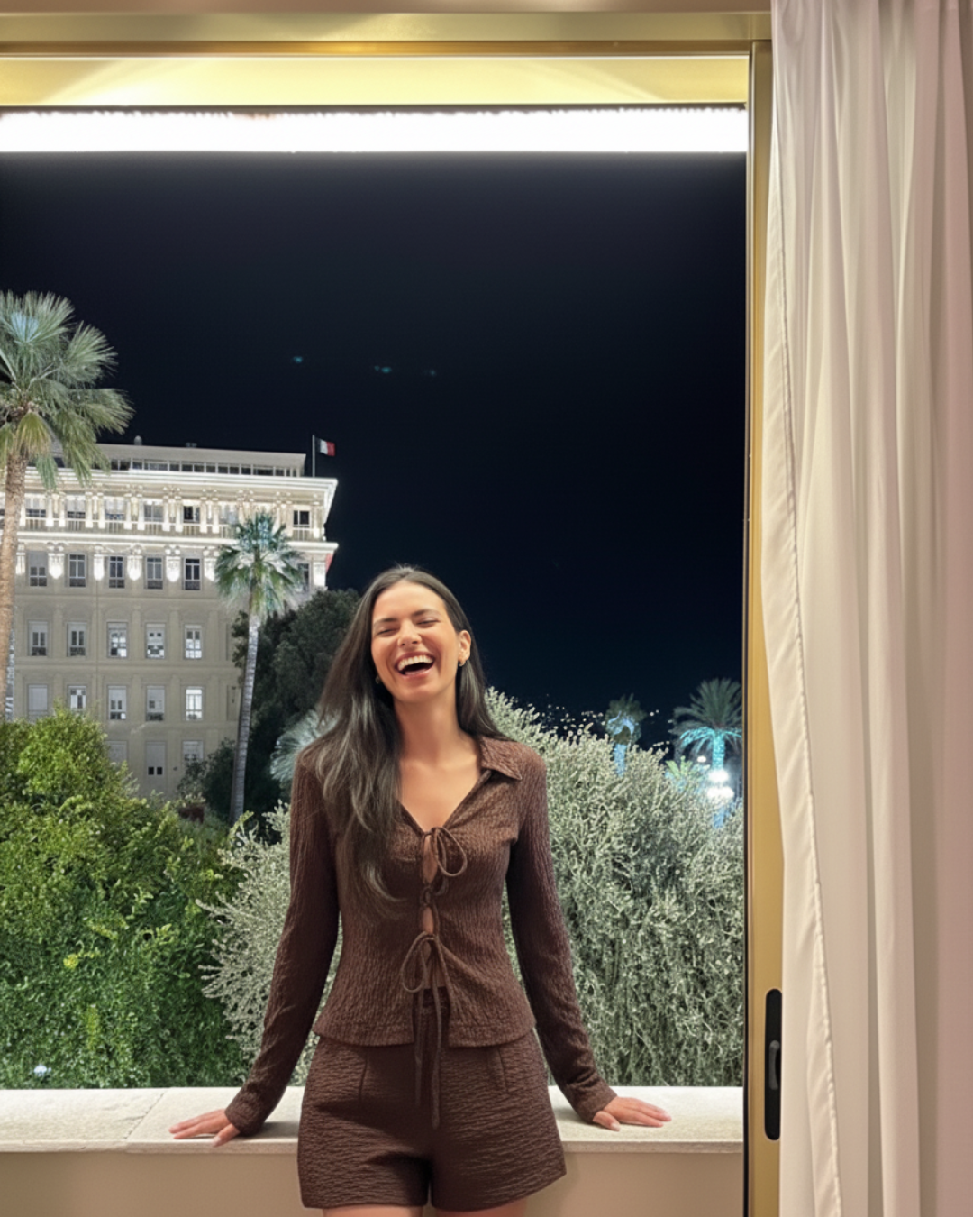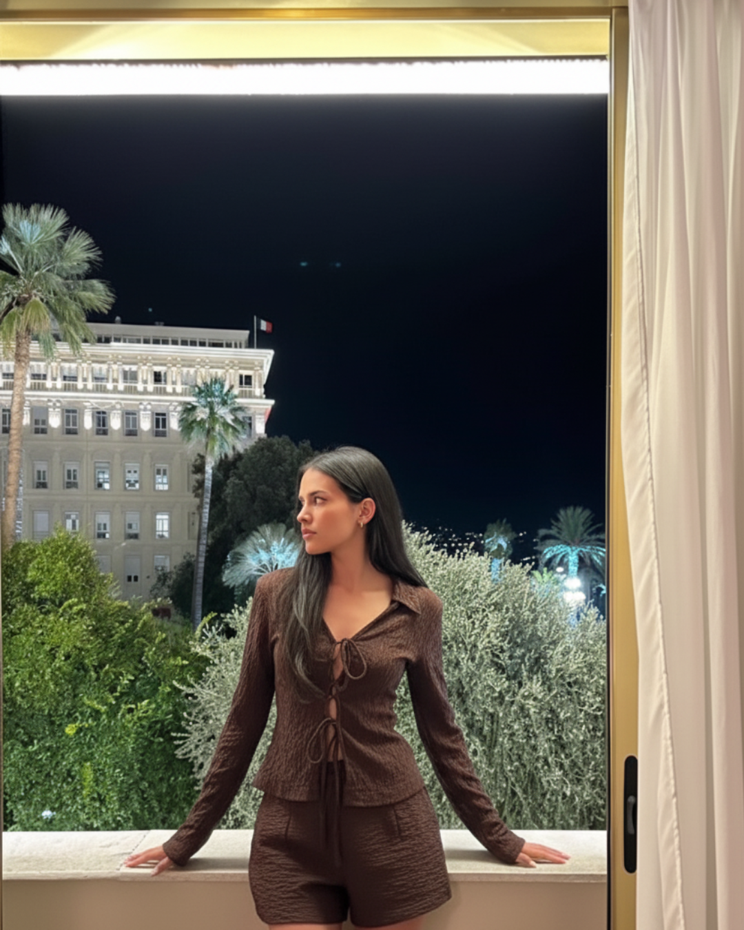 The elegant front tie-up detail allows for a customizable fit, letting you cinch the waist for a flattering silhouette or leave it relaxed for a more laid-back look.
